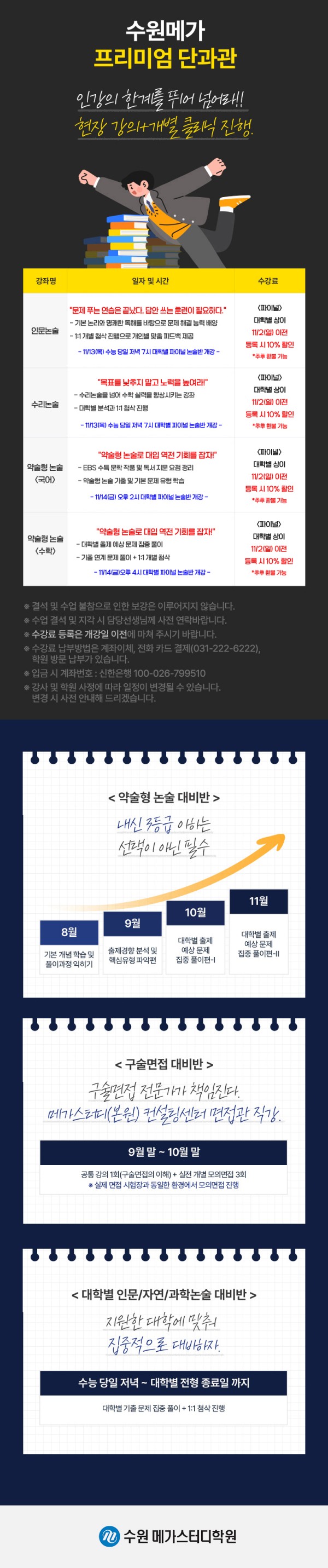 2025 파이널 대학별 논술 프로그램(인문/수리/약술형 논술) 페이지 정보 작성자 최고관리자 작성일 22-11-26 11:12 조회 4,479회 댓글 0건 본문 2025 파이널 대학별 논술 프로그램(인문/수리/약술형 논술)
