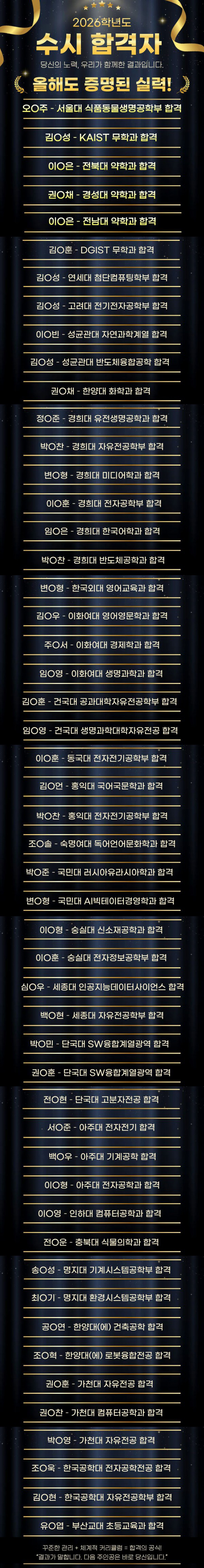 2026학년도 수시 합격자 명단