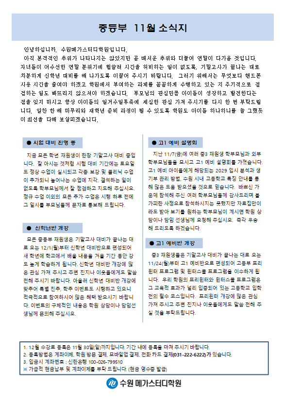 중등 [중등] 11월 가정통신문