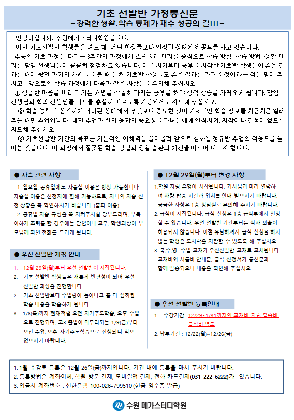 재수 [재정] 12월 가정통신문
