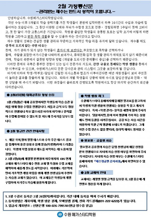 재수 [재정] 2월 가정통신문