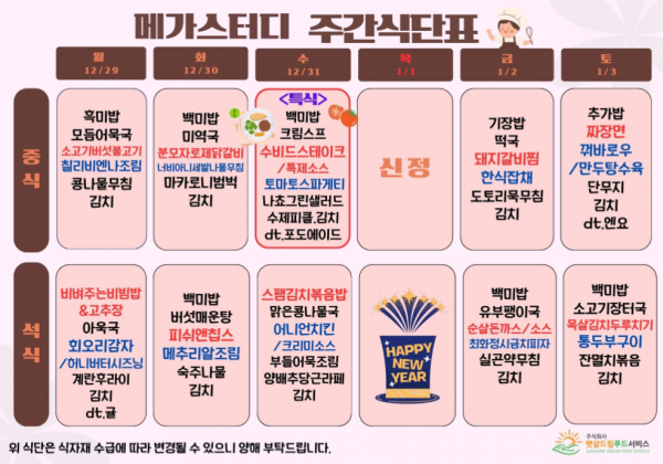 12월 식단표(12/29~1/3)