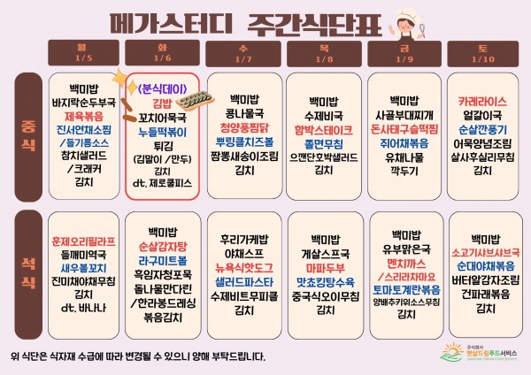 1월 1주차 식단표(1/5~1/10)